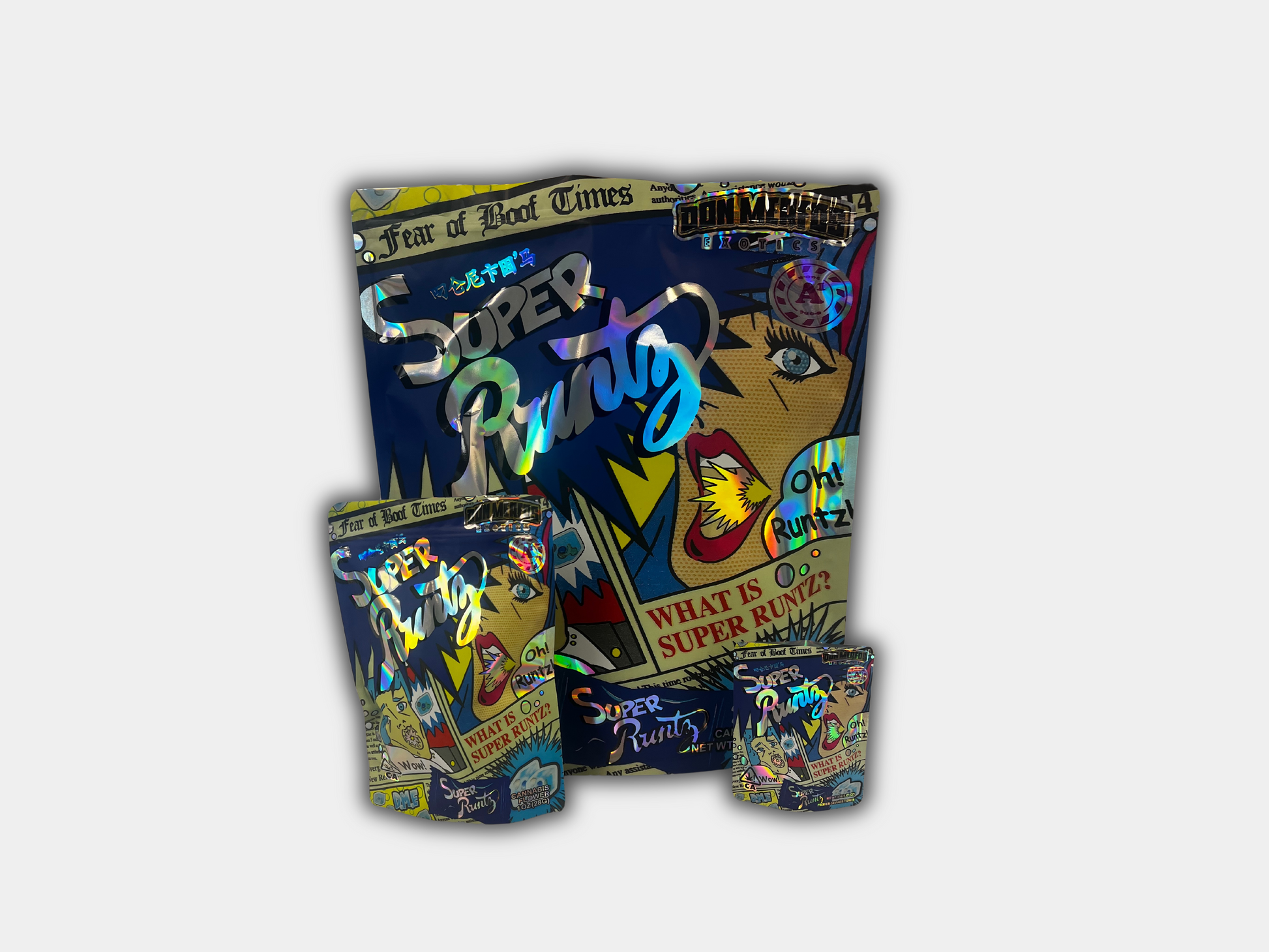 Super Runtz Mylar Bag Set - 32 (3.5g), 16 (1oz), 1 (1lb) for $39.99
